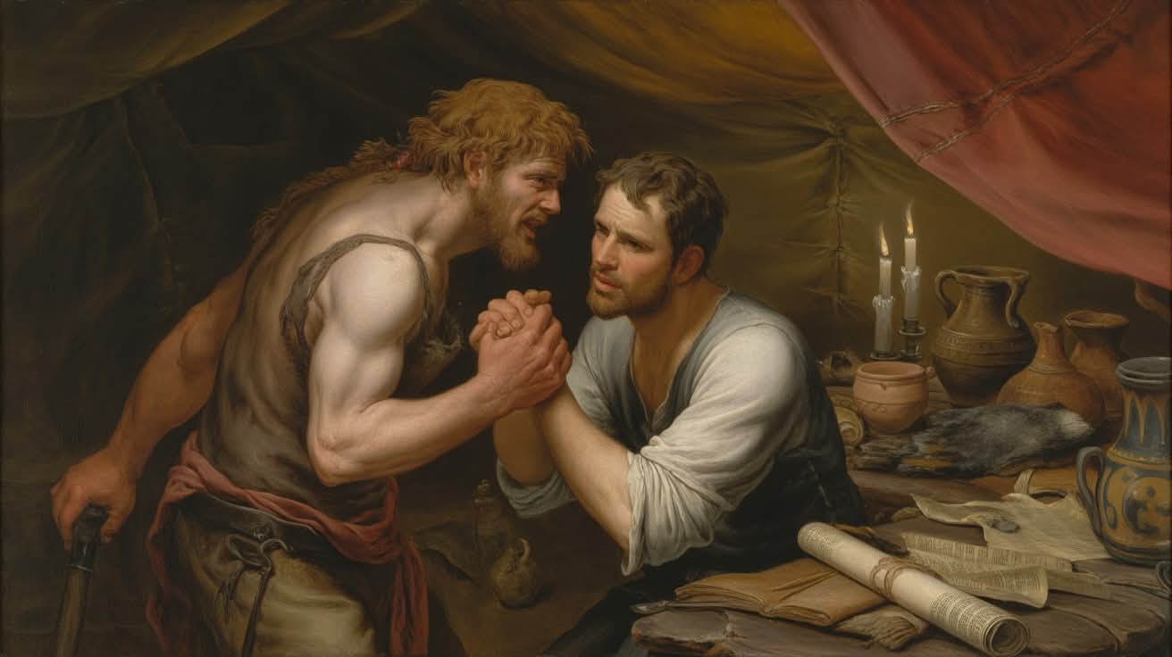 אוגוסטינוס, מאוחר יותר, מציב את השאלה מזווית אחרת: מה קורה לאהבה האנושית כשהיא מתנתקת מן הסדר הרחב יותר של הטוב? הוא מבחין בין אהבה הממוקדת באני הסגור בתוך עצמו לבין אהבה המופנית אל מה שחורג מן האני. כאשר האהבה סובבת סביב « אני », « שלי », « החפצים שלי », היא גולשת לשליטה, לקנאה, לתביעה. השנאה נוצרת אז לא מתוך היעדר אהבה, אלא מתוך אהבה שסולפה והצטמצמה לרצון להחזיק. עשו איננו רק דמות של « רשע »; הוא מגלם מי שזכה לאהבה אבהית חווייתית ואקסקלוסיבית, אך מגלה לפתע שאין בה כל ביטחון קיומי. הבכורה נמכרת, הברכה נלקחת, והאהבה שאמורה הייתה לייצב אותו הופכת למקור של השפלה. שנאתו ליעקב היא גם שנאה לעצמו, לעולם פנימי המתמוטט. אוגוסטינוס מתאר בדיוק מצב כזה: אהבה נטולת טרנסצנדנציה נעשית רגישה עד כאב לתסכול וממהרת להתגלגל לנקמה.